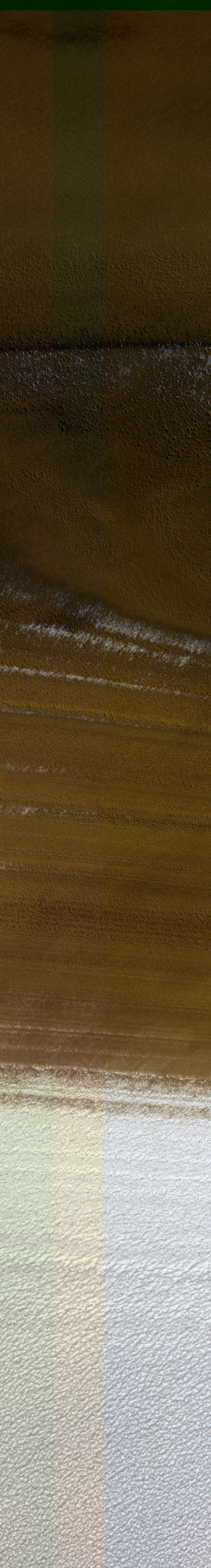 Acquisition date 07 July 2025 Local Mars time 12:36 Latitude (centered) 86.165° Longitude (East) 293.905° Spacecraft altitude 315.6 km (196.1 miles) Original image scale range from 31.6 cm/pixel (with 1 x 1 binning) to 63.1 cm/pixel (with 2 x 2 binning) Map projected scale 25 cm/pixel Map projection Polarstereographic Emission angle 0.4° Phase angle 62.6° Solar incidence angle 62°, with the Sun about 28° above the horizon Solar longitude 107.4°, Northern Summer For non-map projected images North azimuth: 134° Sub-solar azimuth: 322.1° | JPEG Black and white map projected non-map IRB color map projected non-map Merged IRB map projected Merged RGB map projected RGB color non-map projected JP2 Black and white map-projected (498MB) IRB color map-projected (340MB) JP2 EXTRAS Black and white map-projected (239MB) non-map (291MB) IRB color map projected (137MB) non-map (250MB) Merged IRB map projected (147MB) Merged RGB map-projected (131MB) RGB color non map (207MB) |