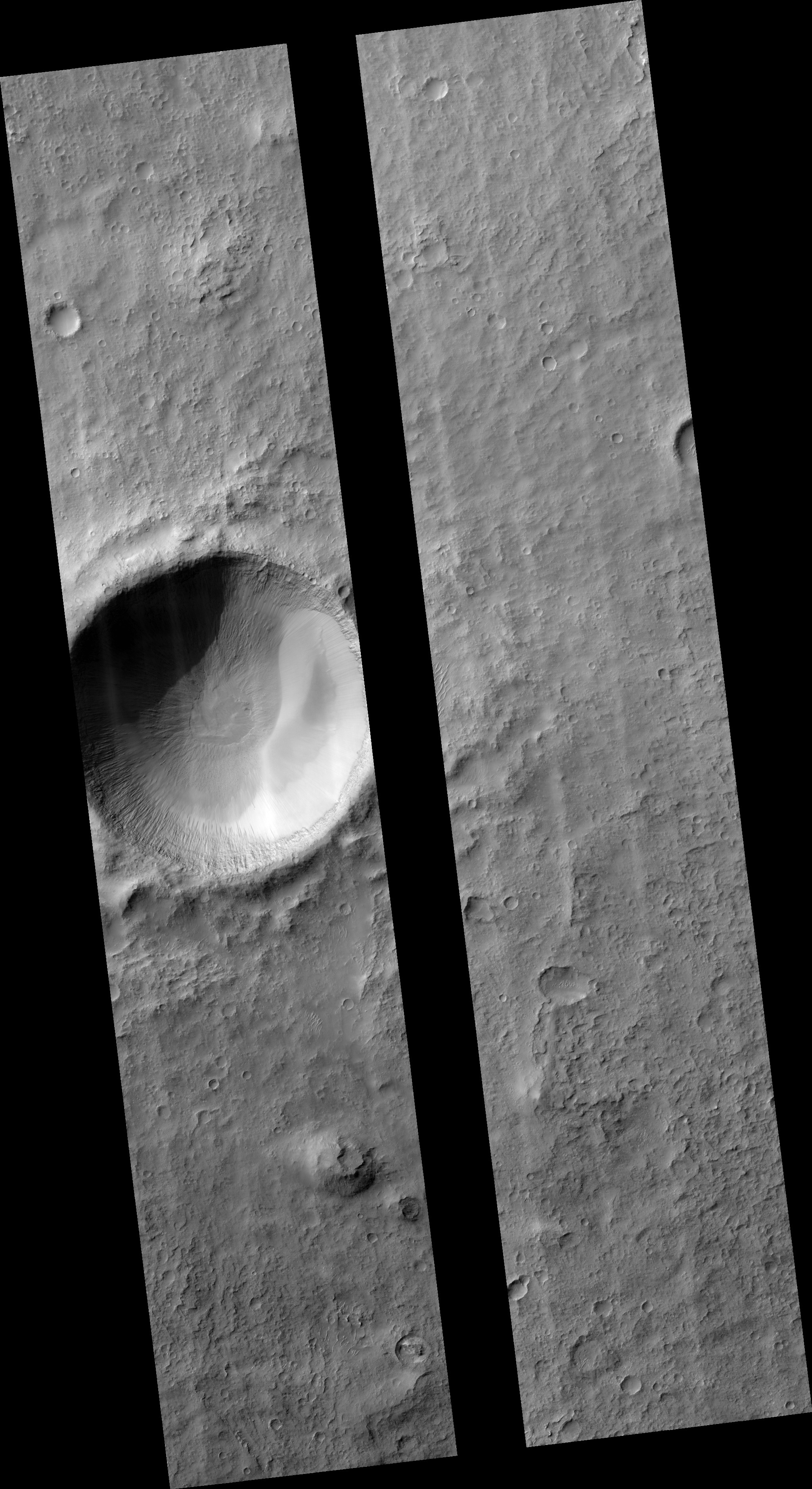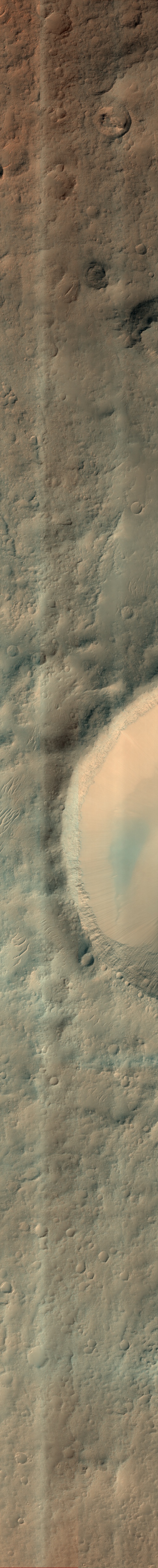 Acquisition date 08 July 2025 Local Mars time 15:30 Latitude (centered) -11.524° Longitude (East) 290.329° Spacecraft altitude 265.6 km (165.1 miles) Original image scale range 53.2 cm/pixel (with 2 x 2 binning) so objects ~160 cm across are resolved Map projected scale 50 cm/pixel and North is up Map projection Equirectangular Emission angle 2.9° Phase angle 64.8° Solar incidence angle 63°, with the Sun about 27° above the horizon Solar longitude 107.5°, Northern Summer For non-map projected images North azimuth: 96° Sub-solar azimuth: 41.0° | JPEG Black and white map projected non-map IRB color map projected non-map Merged IRB map projected Merged RGB map projected RGB color non-map projected JP2 Black and white map-projected (144MB) IRB color map-projected (49MB) JP2 EXTRAS Black and white map-projected (68MB) non-map (112MB) IRB color map projected (19MB) non-map (48MB) Merged IRB map projected (138MB) Merged RGB map-projected (130MB) RGB color non map (90MB) |