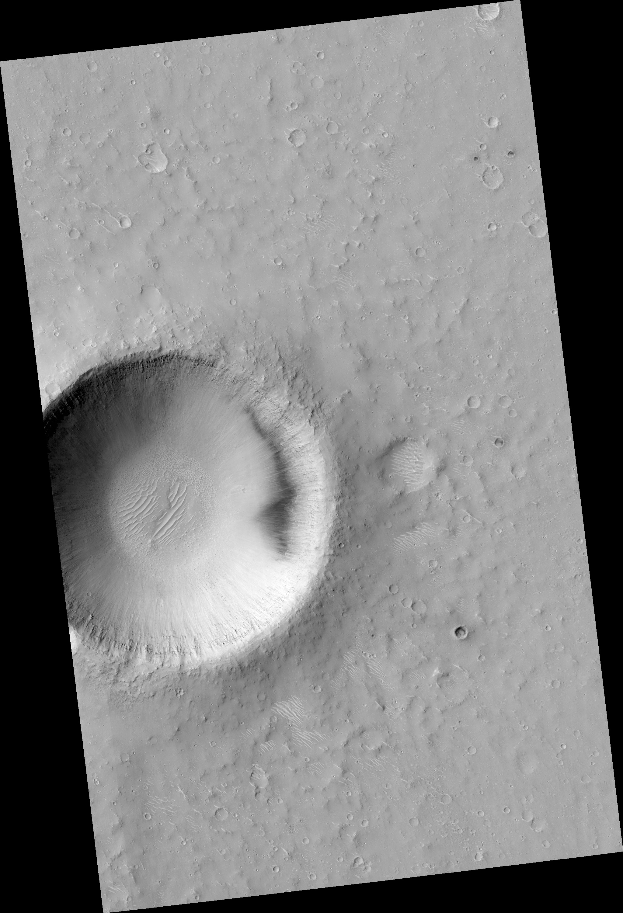 Acquisition date 15 July 2025 Local Mars time 15:29 Latitude (centered) 13.035° Longitude (East) 159.470° Spacecraft altitude 277.0 km (172.2 miles) Original image scale range 55.6 cm/pixel (with 2 x 2 binning) so objects ~167 cm across are resolved Map projected scale 50 cm/pixel and North is up Map projection Equirectangular Emission angle 4.2° Phase angle 46.7° Solar incidence angle 50°, with the Sun about 40° above the horizon Solar longitude 110.9°, Northern Summer For non-map projected images North azimuth: 97° Sub-solar azimuth: 26.2° | JPEG Black and white map projected non-map IRB color map projected non-map Merged IRB map projected Merged RGB map projected RGB color non-map projected JP2 Black and white map-projected (118MB) IRB color map-projected (69MB) JP2 EXTRAS Black and white map-projected (54MB) non-map (85MB) IRB color map projected (18MB) non-map (67MB) Merged IRB map projected (119MB) Merged RGB map-projected (108MB) RGB color non map (62MB) |