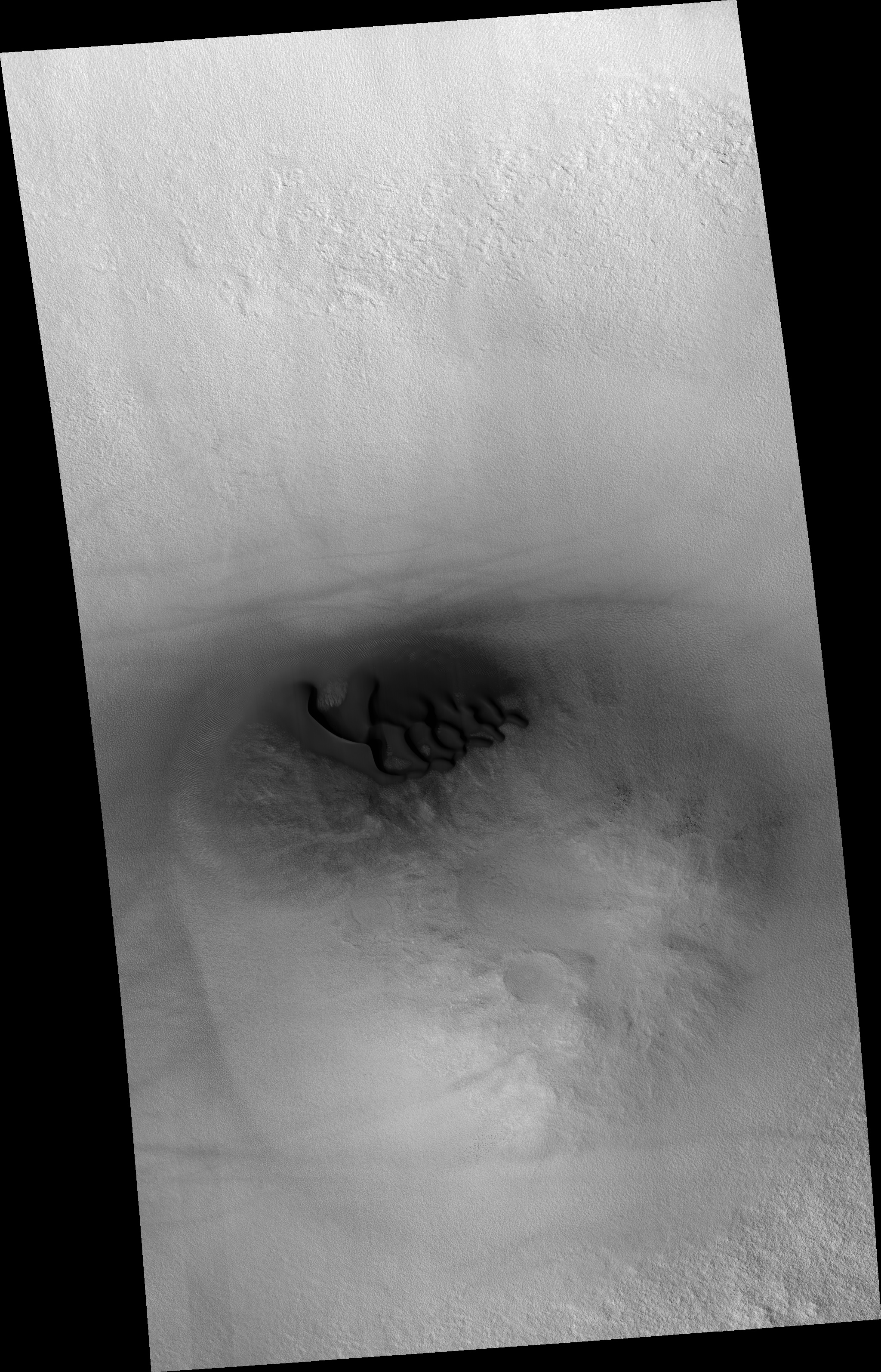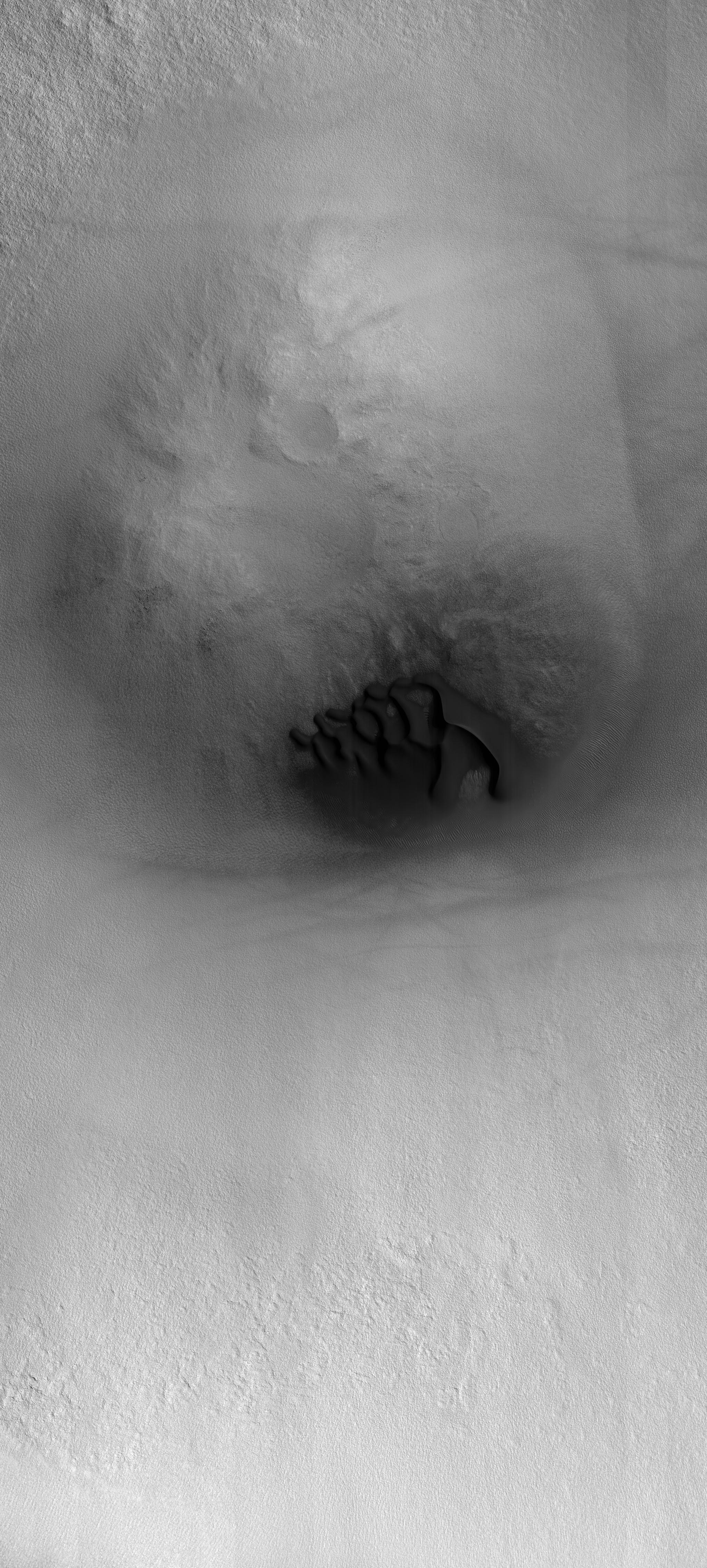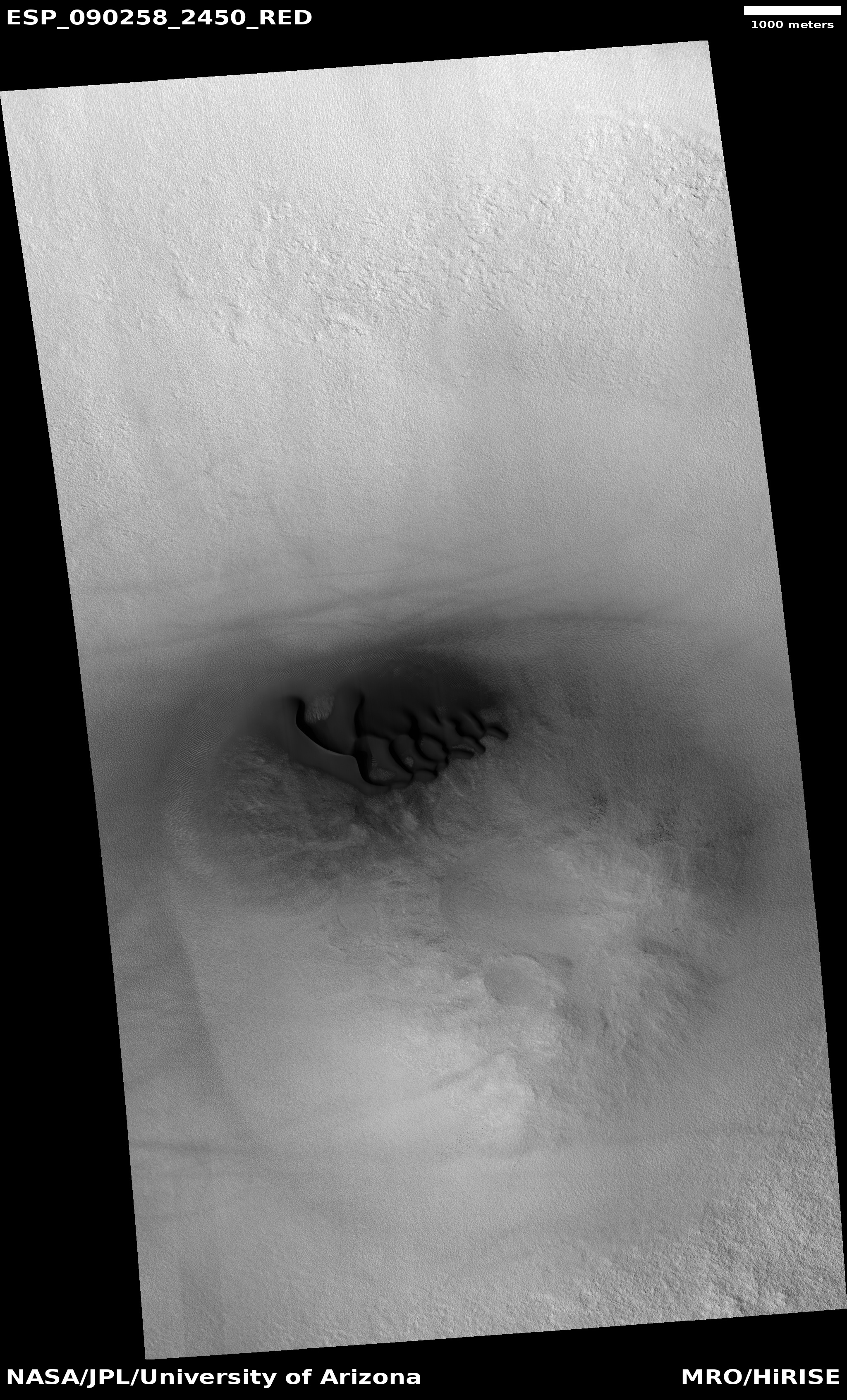 | Acquisition date 28 October 2025 Local Mars time 15:37 Latitude (centered) 64.862° Longitude (East) 209.374° Spacecraft altitude 312.0 km (193.9 miles) Original image scale range 65.3 cm/pixel (with 2 x 2 binning) so objects ~196 cm across are resolved Map projected scale 50 cm/pixel and North is up Map projection Equirectangular Emission angle 17.3° Phase angle 53.5° Solar incidence angle 69°, with the Sun about 21° above the horizon Solar longitude 162.3°, Northern Summer For non-map projected images North azimuth: 95° Sub-solar azimuth: 332.9° | JPEG Black and white map projected non-map IRB color map projected non-map Merged IRB map projected Merged RGB map projected RGB color non-map projected JP2 Black and white map-projected (280MB) IRB color map-projected (160MB) JP2 EXTRAS Black and white map-projected (117MB) non-map (113MB) IRB color map projected (41MB) non-map (95MB) Merged IRB map projected (265MB) Merged RGB map-projected (246MB) RGB color non map (91MB) | ANAGLYPHS Map-projected, reduced-resolution Full resolution JP2 download Anaglyph details page ADDITIONAL INFORMATION B&W label Color label Merged IRB label Merged RGB label EDR products HiView NB IRB: infrared-red-blue RGB: red-green-blue About color products (PDF) Black & white is 5 km across; enhanced color about 1 km For scale, use JPEG/JP2 black & white map-projected images USAGE POLICY All of the images produced by HiRISE and accessible on this site are within the public domain: there are no restrictions on their usage by anyone in the public, including news or science organizations. We do ask for a credit line where possible: NASA/JPL-Caltech/UArizona POSTSCRIPT NASA’s Jet Propulsion Laboratory, a division of the California Institute of Technology in Pasadena, Calif., manages the Mars Reconnaissance Orbiter for NASA’s Science Mission Directorate, Washington. The HiRISE camera was built by Ball Aerospace and Technology Corporation and is operated by the University of Arizona. |